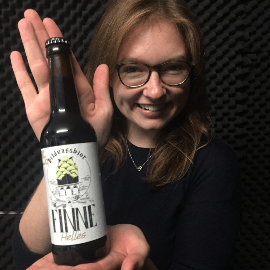 Weitblick Mitarbeiterin Laura stellt uns das “Bildungsbier” vor. Damit wird eine Schule in Benin mitfinanziert.