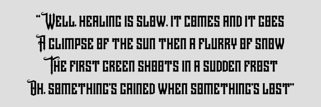 Mit diesen Kontrasten zeichnet sie den unveränderlichen Kreislauf des Lebens. Durch Vergleiche mit dem Absterben und späterem Wiederaufleben der Natur malt Welch ein Bild, welches nicht klar in eine Stimmungslage einzuordnen ist und noch weniger eine deutliche Gefühlslage wiederspiegelt. Aber genau davon lebt Perfume And Milk, was ursprünglich als Gedicht entstanden ist. Die Verse geben tiefen Aufschluss über die Vielschichtigkeit von Gedanken und Gefühlen, die mit solch einem Schicksalsschlag einhergehen und obwohl es zeitlich von allen Songs am weitesten vom eigentlichen Geschehnis entfernt ist, verliert es dadurch keineswegs an Aktualität. Vielmehr versteht es sich als eine Reflexion und fokussiert die Erkenntnis, dass das Leben konstant weitergeht, aber Gefühle dabei nie an Validität verlieren. Mit den Zeilen “All Shall Be Well” hinterlässt Florence eine optimistische Note, die sowohl ihr selbst auch den Hörer*innen Hoffnung bietet.
